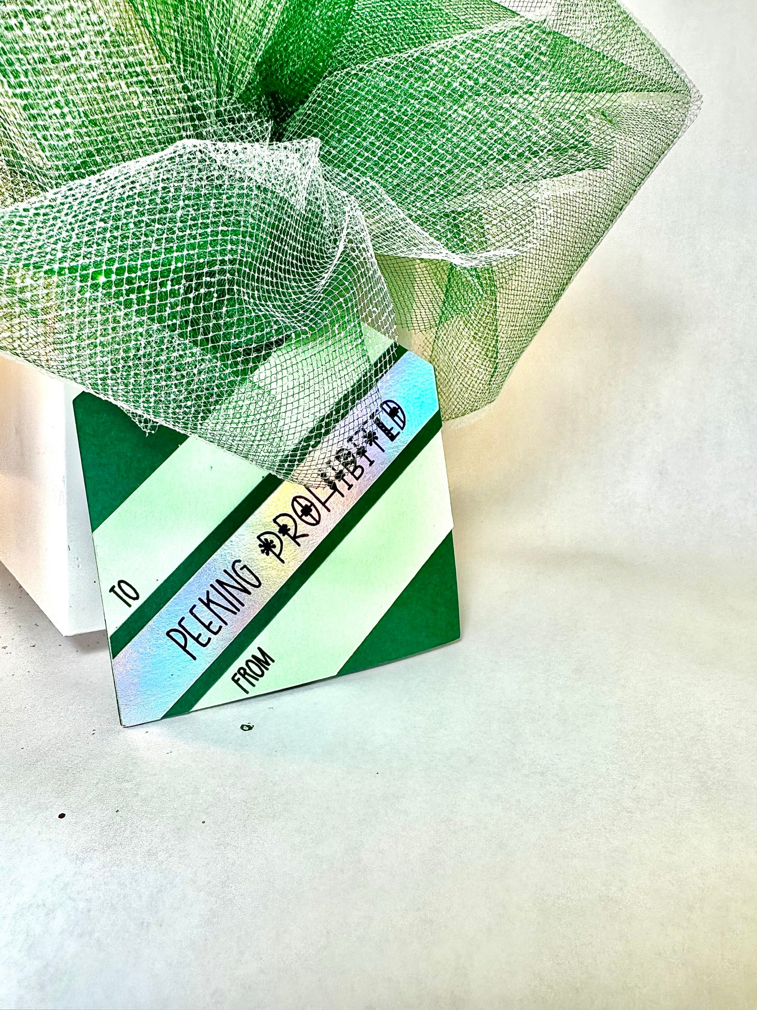 - Gold October exclusive small batch gift tag attached to the bow, ready to go