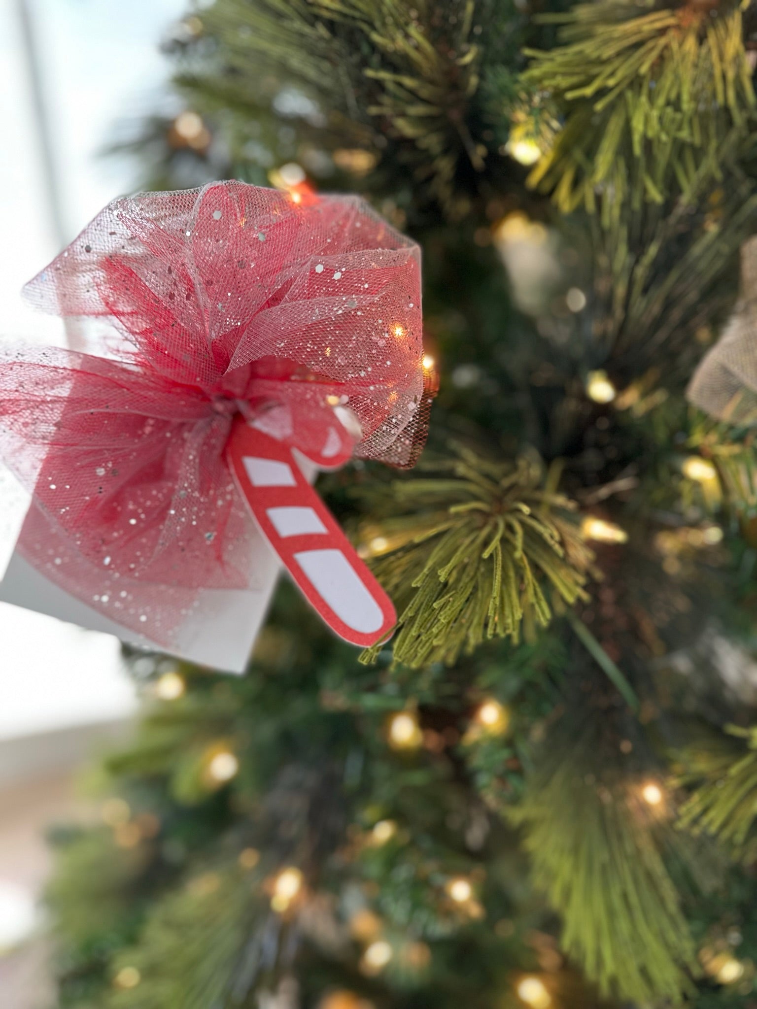 - Reusable, single-piece gift box, specially engineered to hang like an ornament on the tree(4x4x4in)