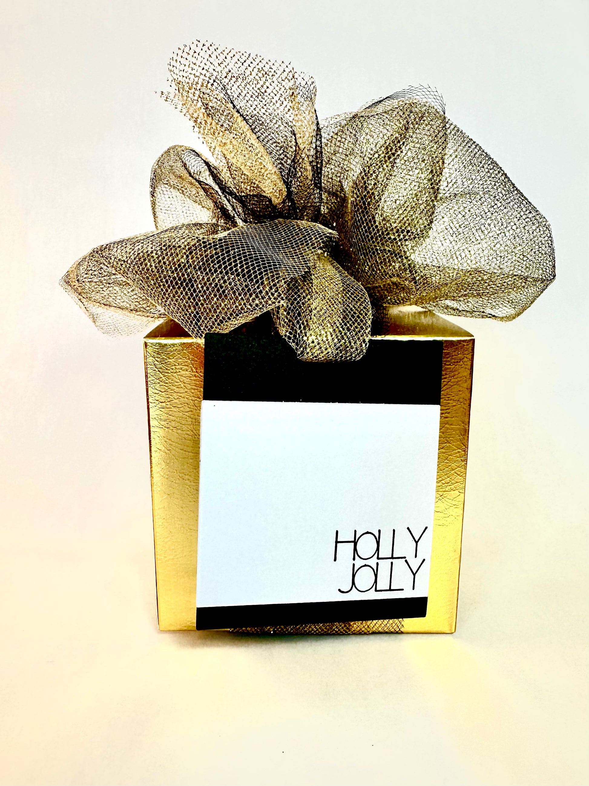 - Gold October exclusive small batch gift tag attached to the bow, ready to go